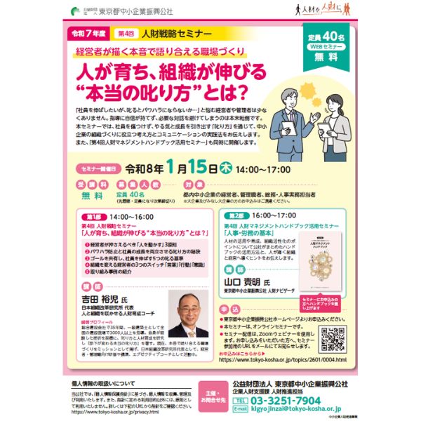 ・叱り方を具体例とともに学ぶことができ、とても分かりやすいセミナーでした。明日からすぐに活かせる内容であり、部下指導における考え方や伝え方について、改めて見直す良い機会となりました。ありがとうございました。