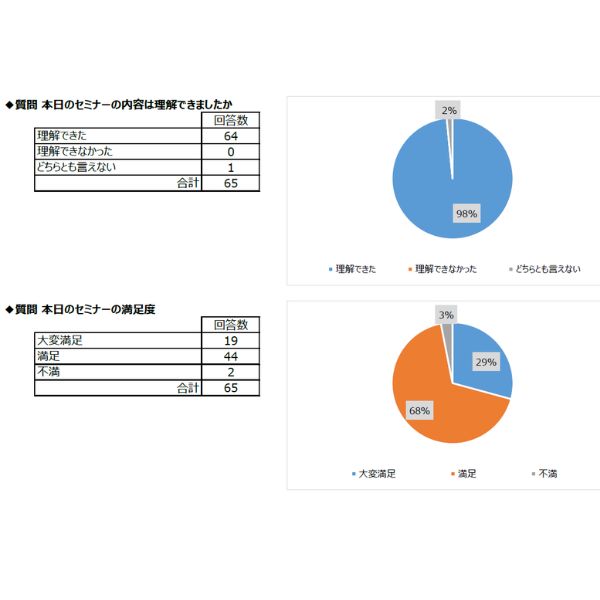 「わかりやすいセミナーでした」「実践しやすい内容でした」といったコメントもいただき、満足度の高いセミナーとなりました。